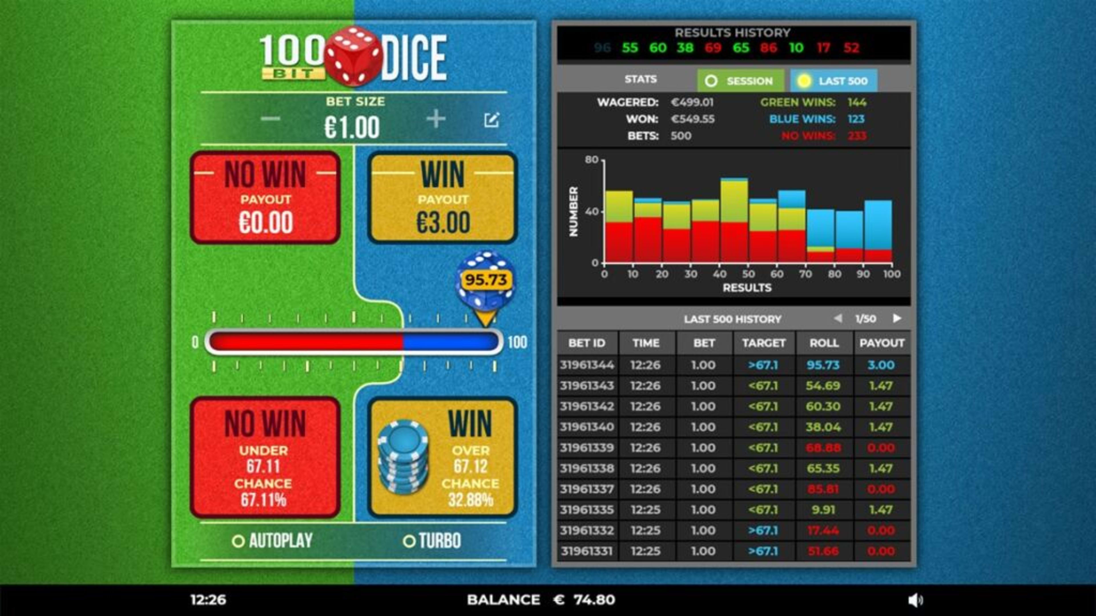 100 Bit Dice - Statystyki gry